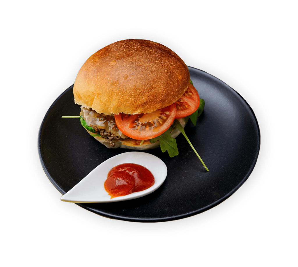 Taze dana eti köftesi, marul, domates, cheddar peyniri, soğan halkaları ve özel soslarla hazırlanan lezzetli burger.